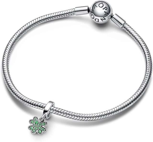 Charm a forma di quadrifoglio con cristallo verde a 29€.