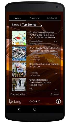 L'idea alla base di questa app, scaricabile tramite Google Play, è offrire un accesso diretto ad alcune funzioni disponibili tramite lo smartphone direttamente nella schermata di blocco – senza neppure dover inserire la password e avviare il browser. In particolare è possibile inserire una stringa di testo da cercare su Bing (il search di Microsoft), dare un'occhiata alle news selezionate e mostrate nella schermata, consultare le notifiche (chiamate perse, messaggi ecc) e avviare direttamente la fotocamera o regolare i parametri di WiFi e Bluetooth, o del volume, sempre senza sbloccare lo smartphone. Per i clienti indiani c'è anche un calendario tarato sulle festività e le ricorrenze della regione in cui vivono.