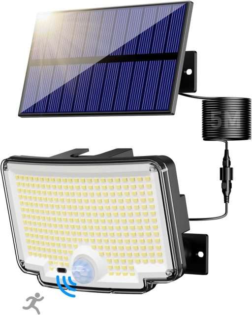Questa eccezionale luce solare illuminerà i tuoi spazi esterni come mai ti aspetteresti! Ben 310 LED integrati e un comodissimo telecomando per gestire la lampada anche se posizionata in alto. Il pannello solare separato, ma collegato da un cavo lungo 5 metri, ti consentirà massima libertà di installazione ovunque ti serva.