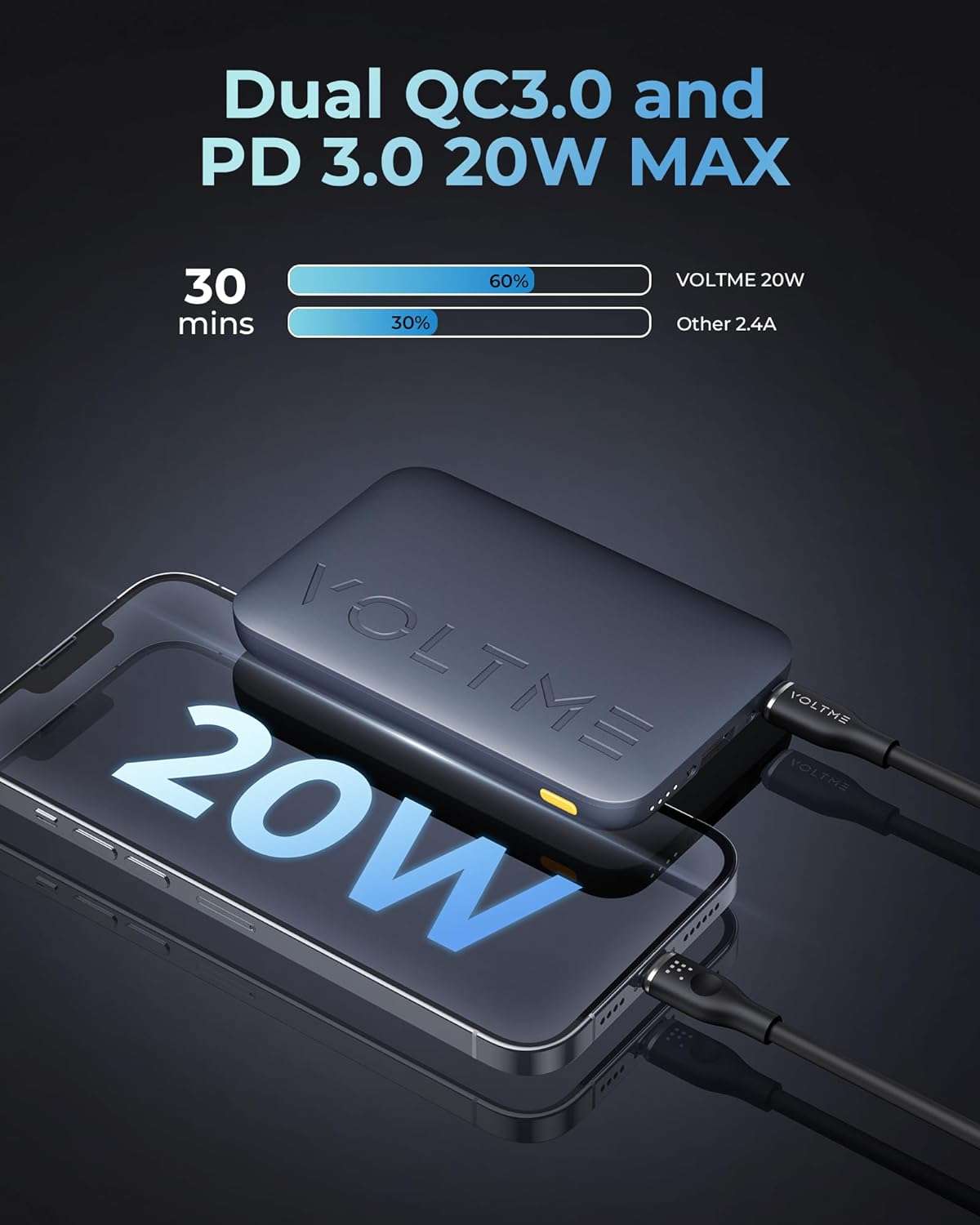 Questo Power Bank si fa apprezzare per diverse ragioni, ad esempio il suo design leggero e sottile che ti consente ti tenerlo tranquillamente in una tasca senza che ti dia fastidio. Ha le dimensioni di poco inferiori a uno smartphone. È compatibile con tutti i dispositivi e possiede 2 uscite USB molto veloci.