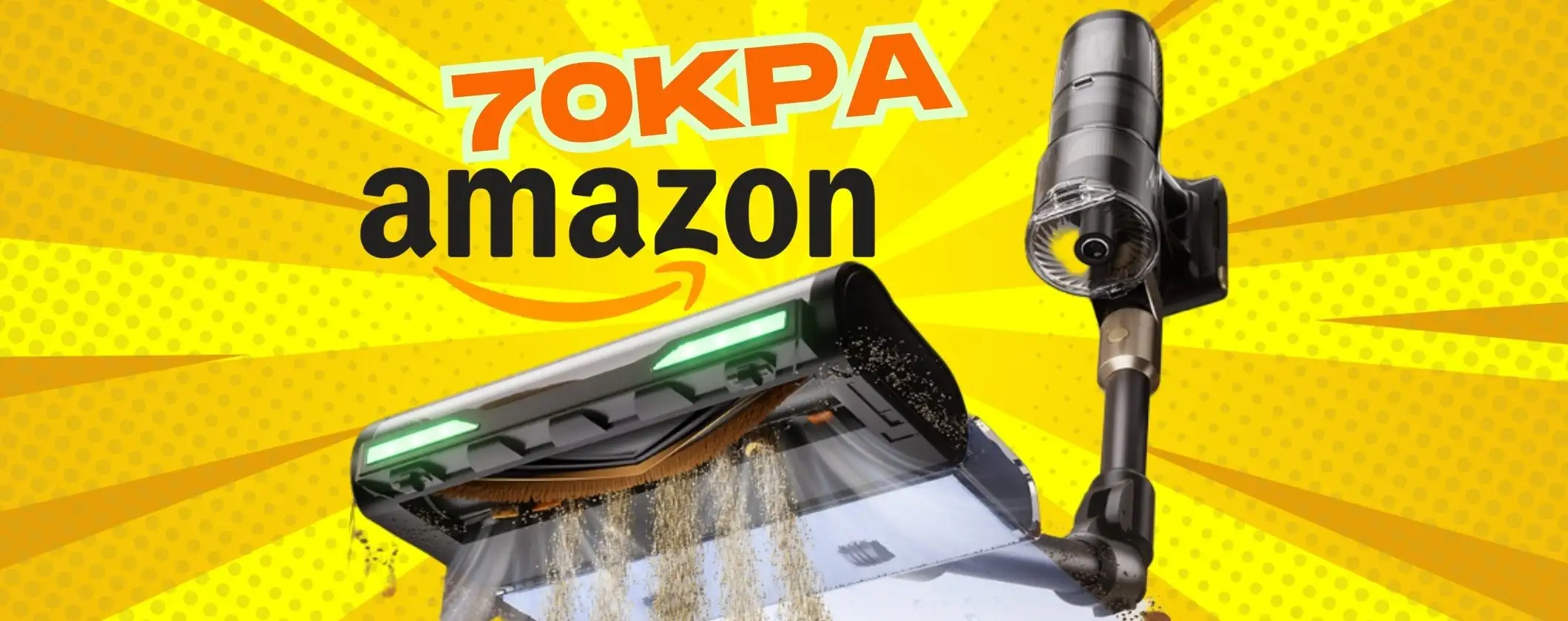 Possiede una straordinaria batteria in grado di arrivare fino a 70 minuti con una ricarica completa e in modalità Eco. Potrai scegliere tra diverse potenze in base a ciò che devi aspirare e a quanto vuoi far durare la batteria. È maneggevole e leggera, e gode di uno snodo sulla parte centrale che ti consente di arrivare anche nei punti più difficili senza dover fare fatica. Il filtro HEPA raccoglie tutta la polvere, fino al 99,9%, e in confezione trovi diversi accessori per aspirare su più superfici.