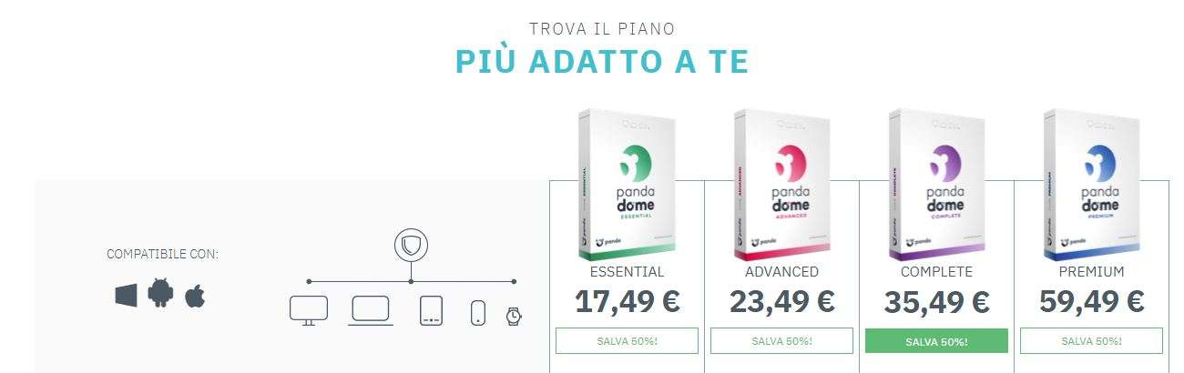Come detto in apertura, Panda Antivirus ti permette di scaricare una versione completamente gratuita, ma per avere le funzioni più avanzate per una maggiore sicurezza è necessario acquistare uno dei pacchetti Premium: ancora per poco, puoi acquistarli con il 50% di sconto. Scopriamoli insieme.