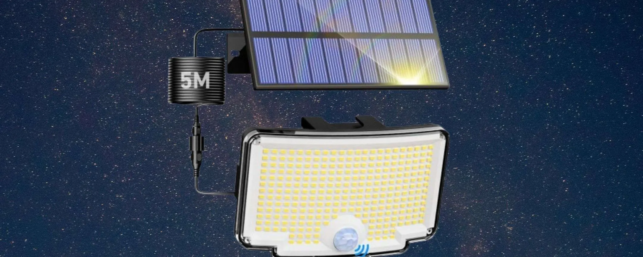 In questo momento, su Amazon c’è in sconto una versione spettacolare con ben 318 LED ad alta intensità integrati e con pannello solare separato e collegabile tramite cavo lungo ben 5 metri. Un prodotto che puoi portare a casa semplicemente attivando il coupon sulla pagina del dell’articolo e completando l’ordine. Lo prendi a 12,74€ e il bello è che le spedizioni sono veloci e senza costi aggiuntivi, se sei iscritto ai servizi Prime. Fai in fretta: la disponibilità residua è limitata.