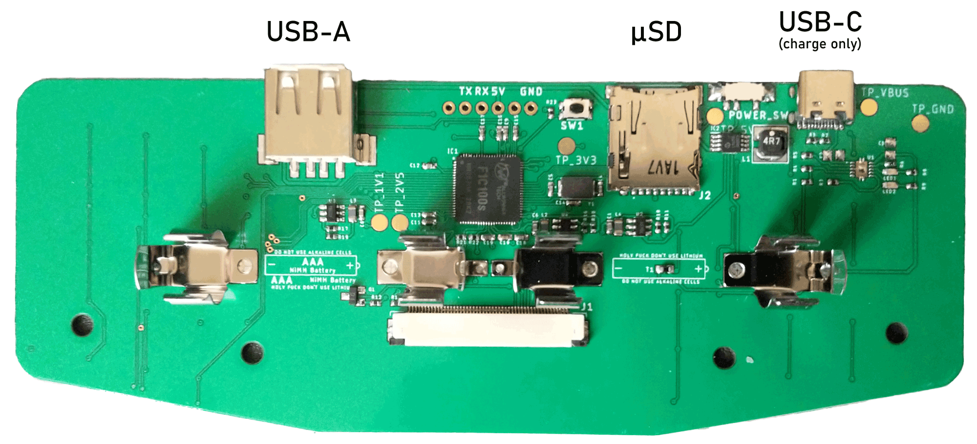 Per il resto, il computer è alimentato da un system-on-a-chip Allwinner F1C100s che consiste in un processore ARM ARM926EJ-S con una frequenza di clock a 533MHz e 32MB di memoria DDR. È presente anche un display con tecnologia IPS TFT, diagonale da 2.3 pollici e una risoluzione da 320×240 pixel. Un ingresso USB 2.0, una slot per microSD che supporta fino a 64GB di spazio, due batterie AAA e una porta USB-C per alimentazione e ricarica a completare il quadro. Il tutto è alloggiato all’interno di una costruzione in plastica in due pezzi che si agganciano tra loro.
