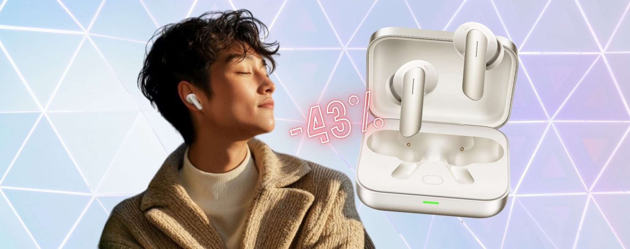 C’è dunque uno sconto straordinario del 43% che abbatte drasticamente il prezzo portandolo molto vicino al minimo storico. Oggi dunque puoi risparmiare 30 euro sul totale e per questi auricolari wireless non è davvero niente male. Offrono diverse tecnologie che ti permetteranno di ascoltare la musica in qualsiasi posto e fare chiamate senza disturbi. Inoltre sono comodi e leggeri.
