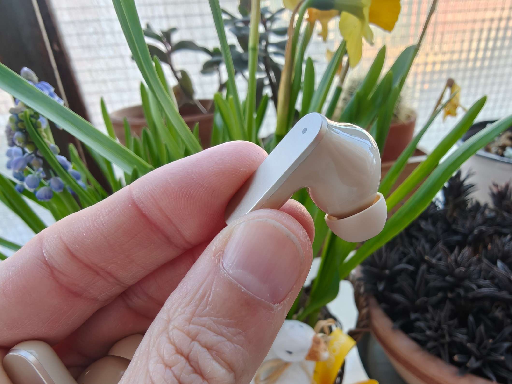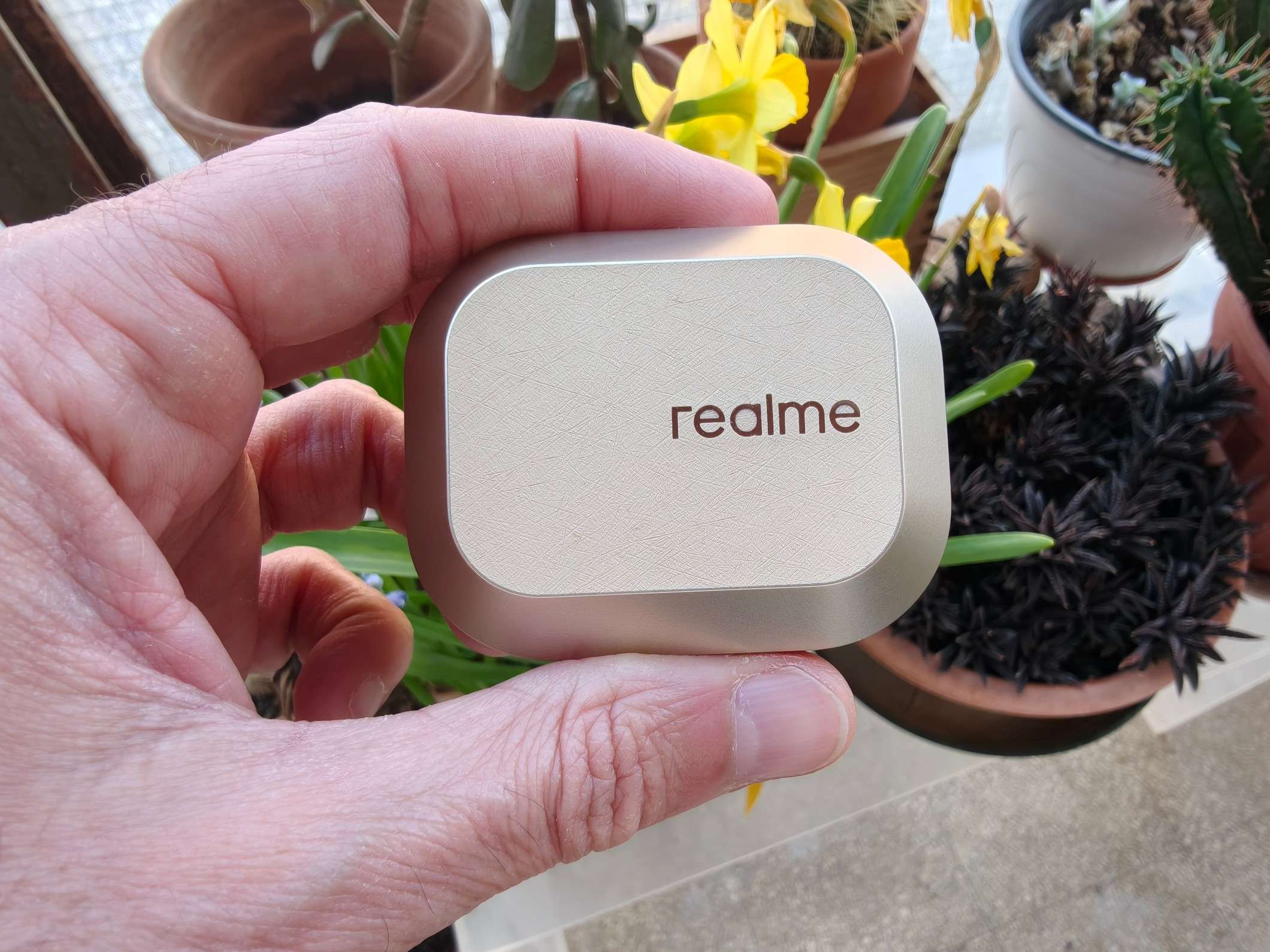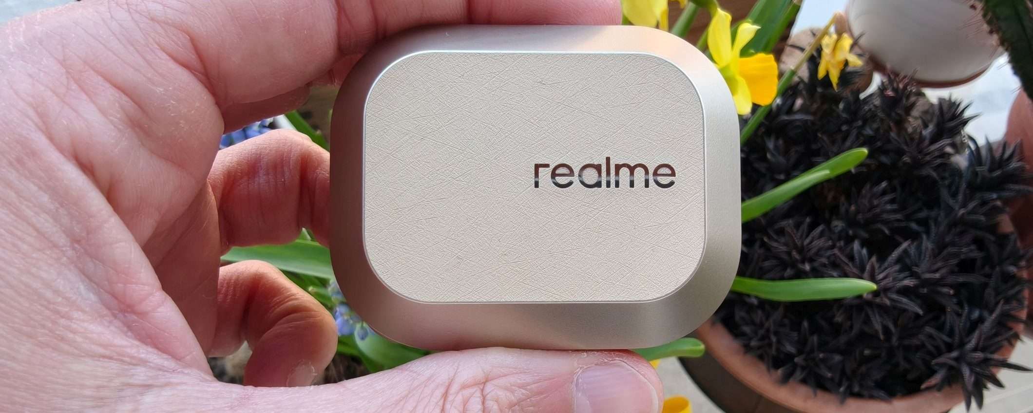La prima sorpresa arriva già dal design. realme torna a collaborare con Naoto Fukasawa e il risultato si vede. Il case è più squadrato, pulito, quasi minimalista. La finitura soft-touch, che ricorda pelle o velluto, alza immediatamente la percezione qualitativa ed è piacevolissima al tatto. È uno di quei prodotti che, appena lo tocchi, non sembra “economico”. Gli auricolari restano a stelo, ma sono leggeri (4,67 grammi) e soprattutto comodi anche dopo ore. La certificazione IP55 li rende perfetti anche per sport e uso quotidiano. Piccola nota negativa: la plastica del case tende a graffiarsi facilmente. Nulla di grave, ma va detto.[/caption]