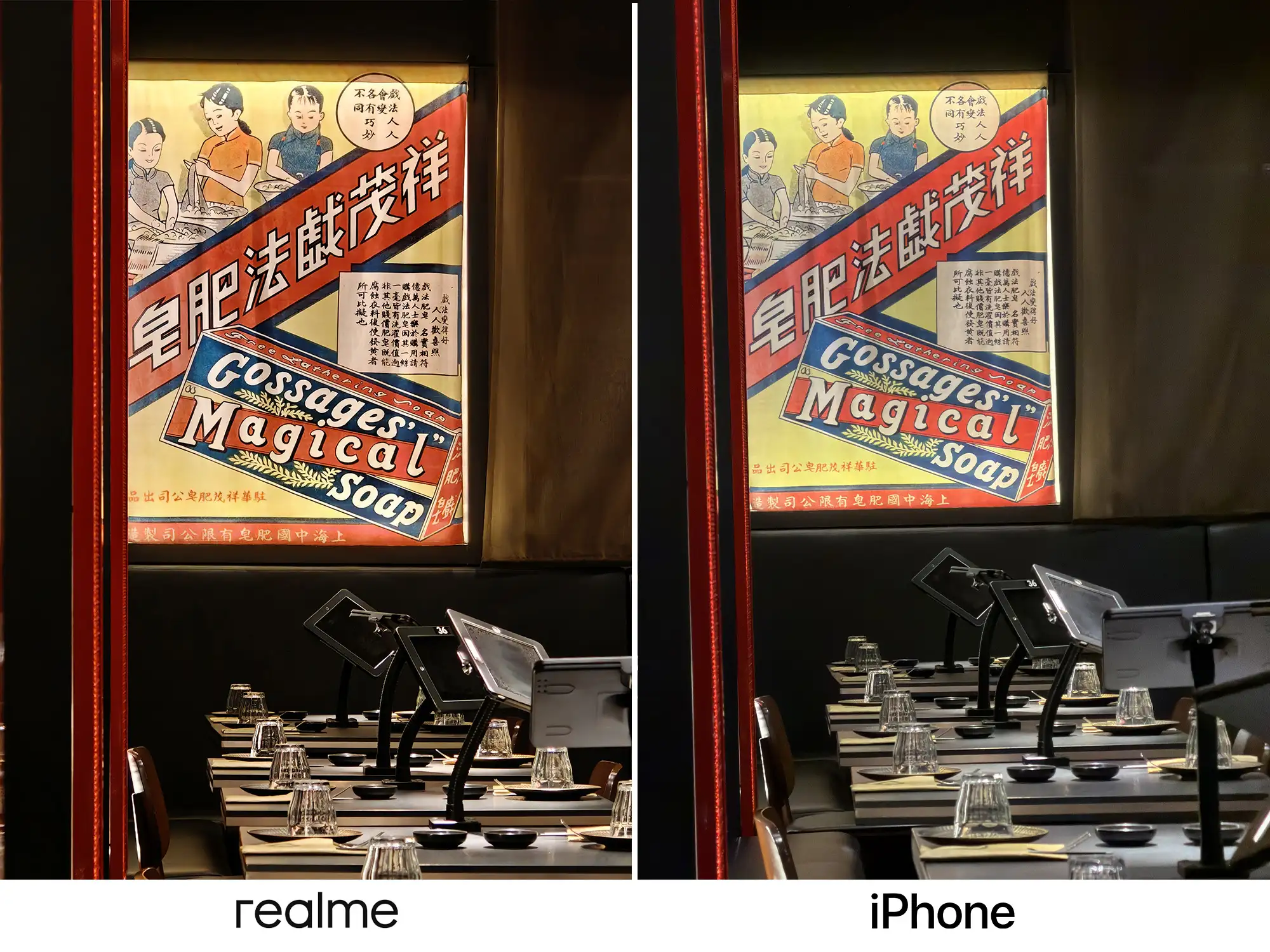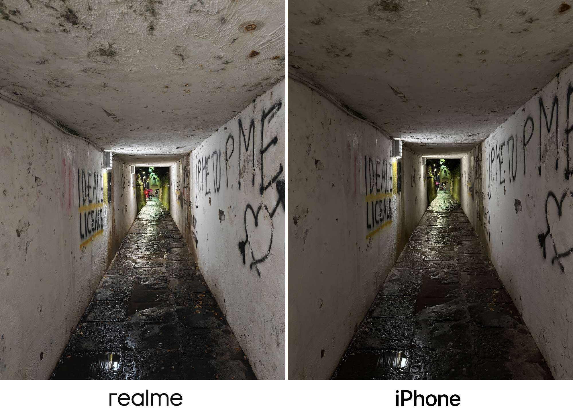 In notturna, realme sfrutta al massimo sensori luminosi e algoritmi aggressivi: le foto risultano più chiare, con meno rumore e una leggibilità superiore nelle aree d’ombra. iPhone segue un approccio più conservativo: colori più fedeli, sì, ma spesso immagini meno luminose e meno impattanti.