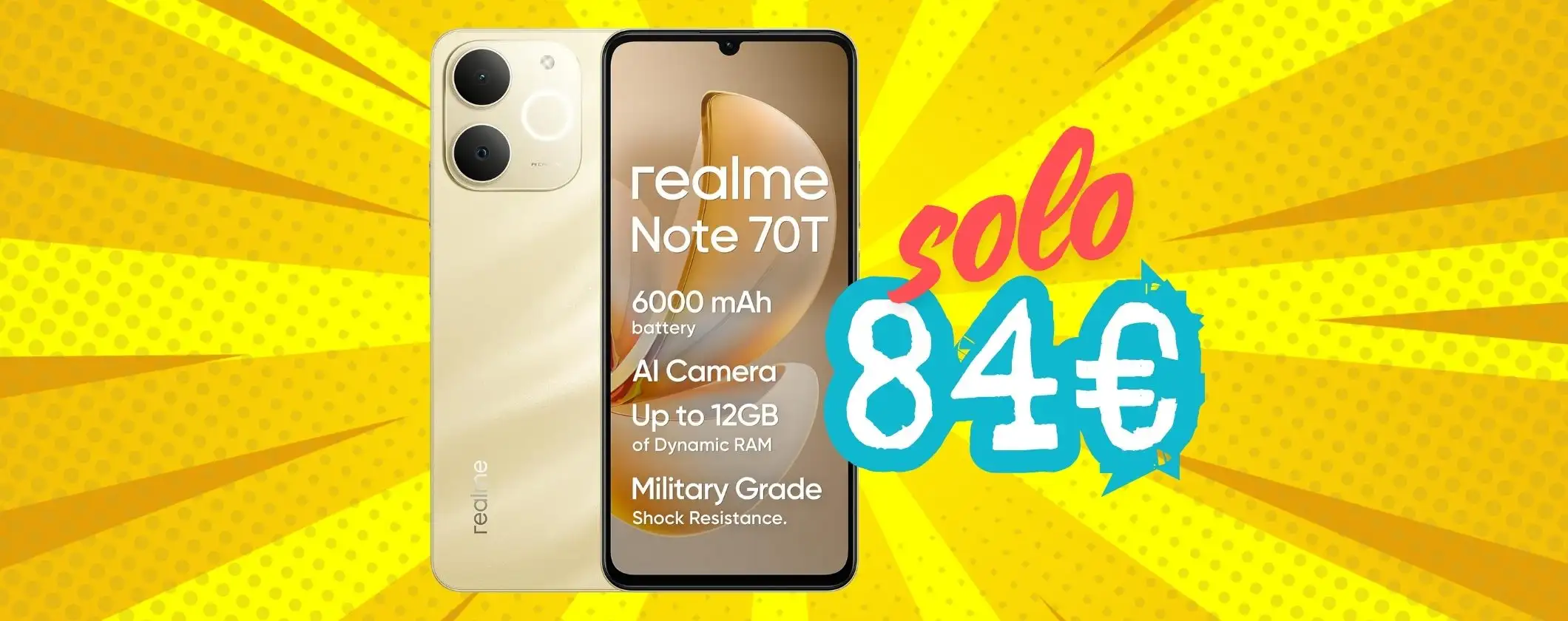 Devi acquistare unno smartphone che abbia una super batteria ma che costi il meno possibile così che te lo puoi portare ovunque senza paura di romperlo o per darlo a tuo figlio come suo primo telefono? Allora vai immediatamente su Amazon e acquista il Realme Note 70T a soli 84,99 euro, invece che 99,99 euro.