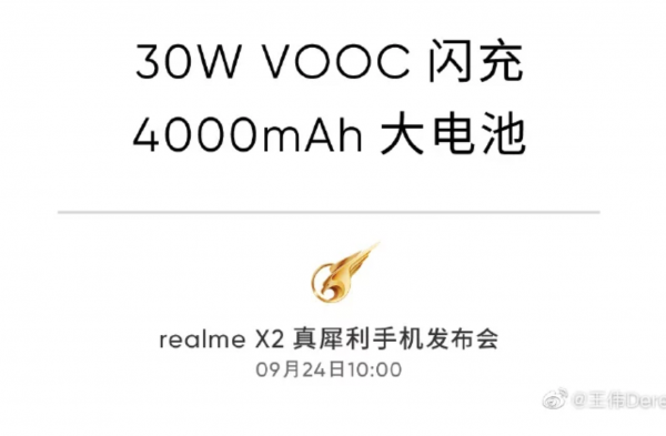 Nell’ultimo teaser condiviso da Realme, è stato confermato che l’X2 sarà alimentato da una batteria da 4.000 mAh e che verrà fornito con la tecnologia di ricarica rapida VOOC da 30 W.