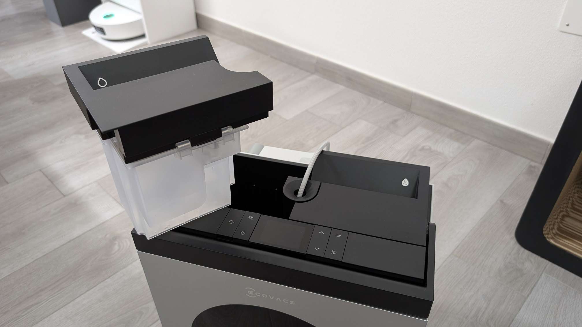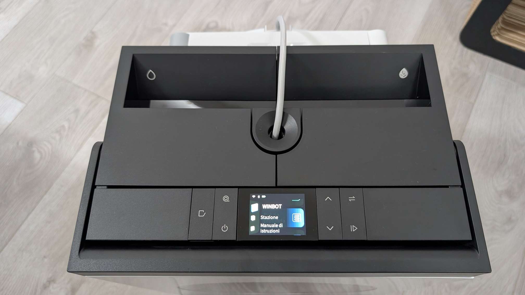 La stazione OMNI è senza dubbio l’elemento che caratterizza maggiormente questo modello. Al suo interno trovano spazio due serbatoi separati per l’acqua pulita e quella di scarico, il sistema di lavaggio automatico del panno Vortex Wash, un display frontale molto comodo per capire a colpo d’occhio cosa sta facendo il robot e una batteria integrata che permette di lavorare anche senza avere una presa elettrica nelle vicinanze. È una base più grande e più “importante” rispetto a quella del W2S OMNI, ma anche molto più completa dal punto di vista funzionale. L’unico vero passo indietro, se così possiamo chiamarlo, è l’assenza del vano per la bottiglietta del detergente, una soluzione che nel modello precedente risultava pratica e che qui si sente un po’ la mancanza durante l’uso quotidiano.