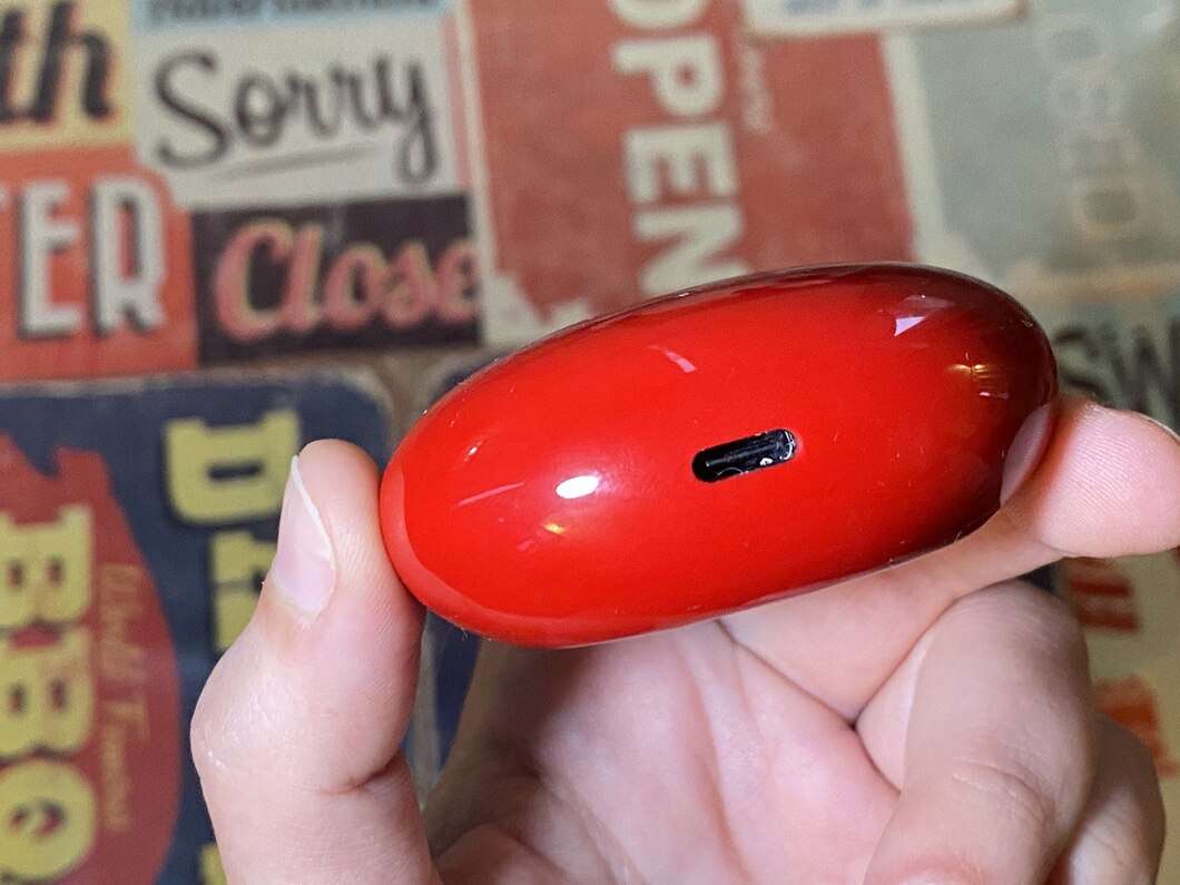 - il case di ricarica è compatto e assomiglia a un bell’ovetto, ma ha una parte piatta per appoggiarli su un piano senza rischiare che cadano;