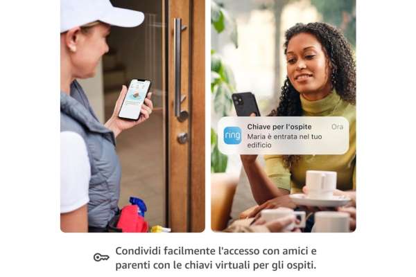 Non c’è dubbio, a questo prezzo la combo Ring Intercom di Amazon + Echo Pop è da prendere al volo, senza pensarci un secondo di più. Come dicevamo puoi rendere il tuo citofono intelligente in un attimo e senza fare installazioni particolari. Così potrei rispondere ai tuoi visitatori anche da remoto e aprire la porta d’ingresso all’edificio mentre sei fuori casa.