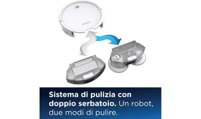 Dotato di un innovativo sistema a due serbatoi, il Bissell SpinWave Robot consente di cambiare facilmente il serbatoio per aspirare o pulire il pavimento in modo automatico, garantendo una pulizia completa e accurata.