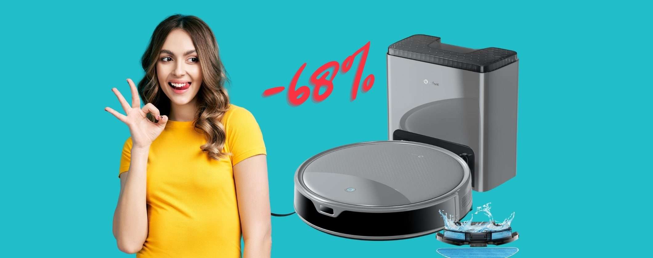 Se ti stai chiedendo se ci sia un errore di prezzo mettiti in coda. È possibile che lo sconto del 68% sia un po’ gonfiato ma ti permette comunque di avere a un prezzo incredibilmente concorrenziale un ottimo robot che aspira e lava il pavimento al posto tuo. L’offerta però è a tempo limitato e quindi devi essere veloce.