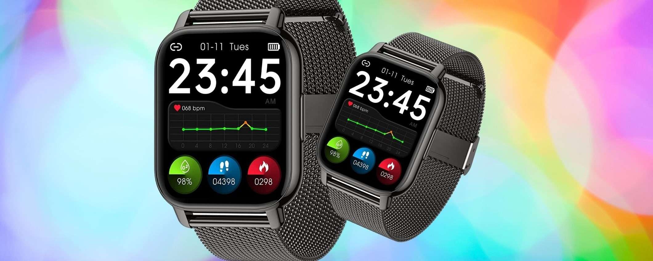 Con cinturino in colorazione metallo, questo smartwatch è perfetto per ogni occasione e per ogni polso. Lo indossi la mattina e non te lo levi più anche perché con quello che ti offre, fai bene ad indossarlo giorno e notte.