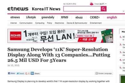 Secondo il sito coreano Electronic Times, Samsung avrebbe intenzione di costruire display 11K entro il 2018 (durante le olimpiadi invernali di Pyeongchang)! Sissignori, avete letto bene: 11k!