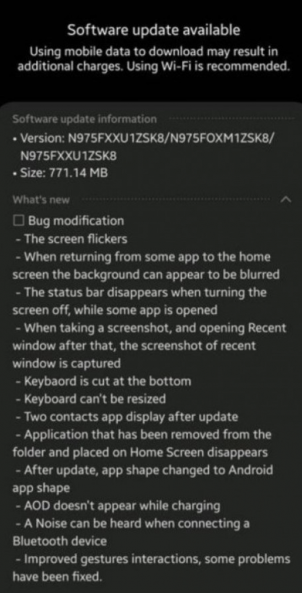 Sappiamo che l’aggiornamento della beta di Android 10 per i phablet Note 10 e Note 10+, noto con il numero di codice N97 * FXXU1ZSK8, è in fase di rilascio in Corea del Sud e India, e ha una dimensione di quasi 771 MB. La build sembra avere particolare impatto sulle funzioni del telefono, portando molte correzioni ai bug segnalati nella versione precedente, oltre a migliorare l’esperienza dell’utente complessiva. In sintesi, l’aggiornamento fornisce la patch di sicurezza di novembre, la correzione allo sfarfallio dello schermo, migliora la stabilità del Bluetooth e della gesture.