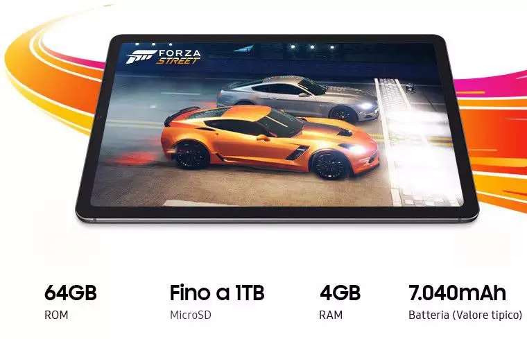 Frontalmente troviamo un ampio display con diagonale di 10,4 pollici e cornici molto più ridotte rispetto al precedente modello, per goderti al meglio la navigazione su internet e tutti i tuoi contenuti multimediali anche grazie al doppio speaker con Dolby Atmos. A bordo di Samsung Galaxy Tab S6 Lite ci sono 64GB di memoria interna, espandibile con microSD, e 4GB di RAM.