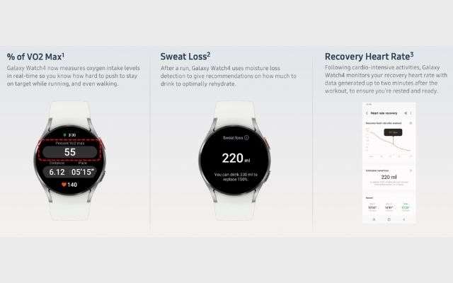 I ciclisti e corridori potranno sfruttare la nuova vista a intervalli che non solo permetterà di impostare l’intervallo ideale tra un allenamento e l’altro, ma offrirà anche informazioni sul tempo di recupero e non solo. Galaxy Watch4 e Watch4 Classic, oltre a registrare in tempo reale i valori della VO2 Max, segnaleranno anche la quantità di umidità persa durante l’allenamento e quanta acqua occorrerà bere per recuperarla.
