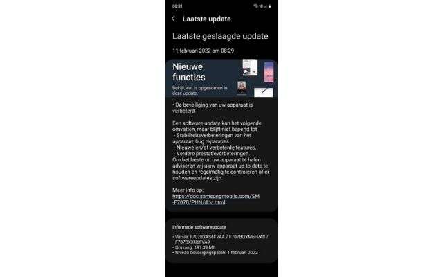 Samsung Galaxy Z Flip sta ricevendo l’aggiornamento software con le patch di sicurezza di febbraio. In queste ore, infatti, dalle prime informazioni pubblicate in rete, scopriamo che il colosso sudcoreano ha avviato il rollout del firmware F700FXXS8FVA2 per la versione con connettività 4G e il firmware F707BXXS6FVAA per la versione con connettività 5G.