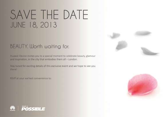 “Bellezza, glamour ed ispirazione”. Sono queste le sensazioni che Huawei “celebrerà” il prossimo 18 Giugno nella città che le fa “provare” tutte, Londra. La società cinese ha invitato i media ad un “exclusive event” nella capitale inglese nel corso del quale annuncerà uno o più device. Inutile dire che, tra i più probabili, c’è il P6-U06 che potrebbe essere annunciato con il nome Ascend P6.