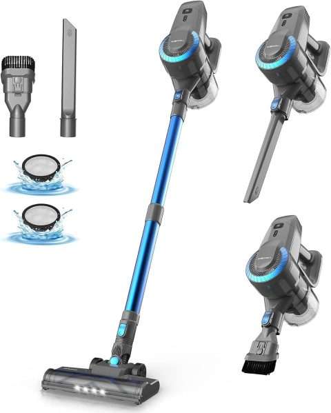 Cosa lo rende così speciale? Innanzitutto, la sua versatilità: è un vero e proprio 6 in 1! Puoi utilizzarlo come aspirapolvere tradizionale per pulire pavimenti duri, tappeti e moquette. Inoltre, grazie agli accessori inclusi, puoi trasformarlo in una comoda scopa elettrica per raggiungere gli angoli più difficili da pulire. Puoi anche staccare l’unità principale e utilizzarla come aspirapolvere portatile per pulire divani, tende e interni dell’auto.