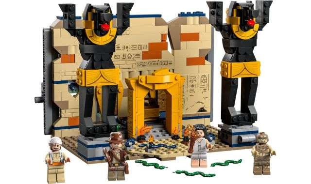 Insieme, queste minifigure possono ricreare una famosa scena di fuga dal tempio, con la statua di Anubi che cade e sfonda una parete per rivelare un passaggio segreto dove appare una mummia che spaventa Indiana Jones in fuga.