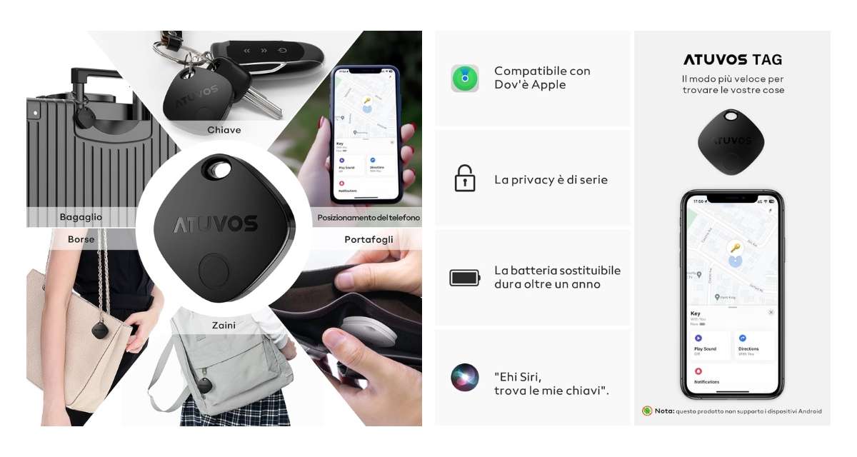 Questa è una grandissima promozione, da non farsi scappare per nessun motivo al mondo. Con questo dispositivo puoi viaggiare tranquillo e andare ovunque senza preoccuparti di nulla. Dunque vai subito su Amazon e acquista il tuo Smart Air Tracker Tag firmato ATUVOS a soli 11,40 euro, invece che 21,99 euro. Se completi l’ordine adesso lo riceverai a casa tua già domani senza costi aggiuntivi, grazie ai servizi Prime. Se non sei ancora abbonato fallo ora cliccando qui.