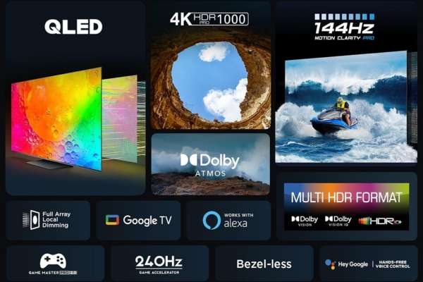 Gode della tecnologia Quantum Dot che ti permette di vedere ogni piccola sfumatura di colori vivaci e più naturali. Il contrasto elevato offre una visione più nitida anche quando le immagini sono particolarmente buie. Ha un refresh rate da 144 Hz e gode di Dolby Atmos e Dolby Audio per suono e video spettacolari. E poi integra Google TV con cui puoi scaricare tantissime app e goderti i tuoi programmi preferiti da un unico posto.