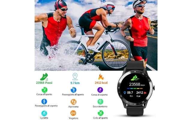 Il design elegante vede la presenza di una quadrante circolare con un display ampio e molto luminoso, ideale per leggere senza problemi le notifiche in arrivo da tutte le applicazioni installate sul tuo smartphone (iPhone o Android fa lo stesso, supporta entrambe i sistemi operativi). Se sei uno sportivo acquistare Blackview X1 è quasi un must: lo smartwatch può registrare le tue prestazioni durante la corsa all’aperto, mentre passeggi all’aria aperta, quando fai una bella escursione in montagna, una corsa oppure monti in sella alla tua bicicletta.