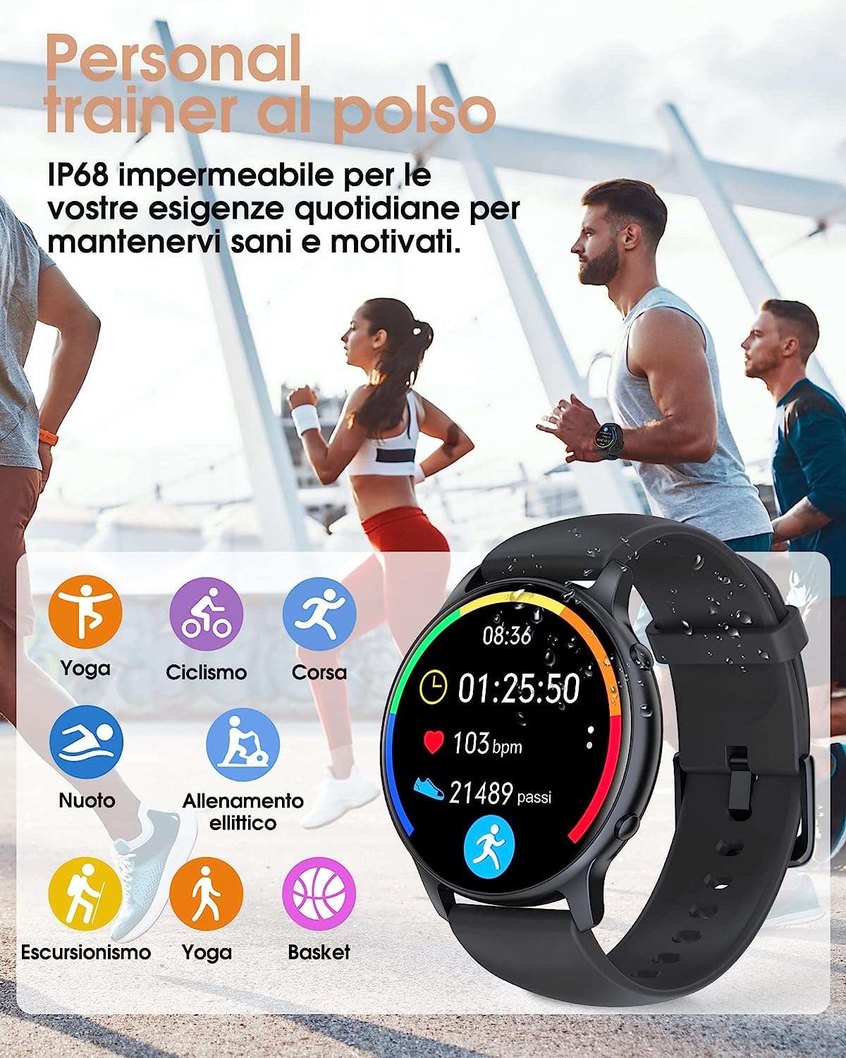 Perfetto per gli amanti dello sport. Infatti grazie alle 16 modalità sportive integrate avrai la possibilità di allenarti al meglio. Sia mentre svolgi le tue sessioni di allenamento, sia quando sei a riposo o svolgi le normali attività quotidiane, è in grado di monitorare il tuo stato di salute in tempo reale. È resistente all’acqua con certificazione IP68, quindi lo puoi usare al mare o in piscina senza problemi. E poi ha una super batteria che può durare per una settimana con una singola ricarica.