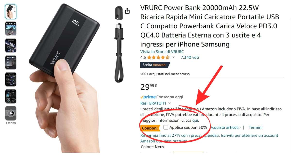 Una vera bomba dunque da non perdere per nessun motivo al mondo. Perciò vai immediatamente su Amazon e acquista il tuoPower Bank a soli 20,99 euro, invece che 29,99 euro. Per ottenerlo a questa cifra ricordati di applicare il coupon che vedi in pagina. Se completi l’ordine adesso lo riceverai a casa tua già domani senza costi aggiuntivi, grazie ai servizi Prime. Se non sei ancora abbonato fallo ora cliccando qui.