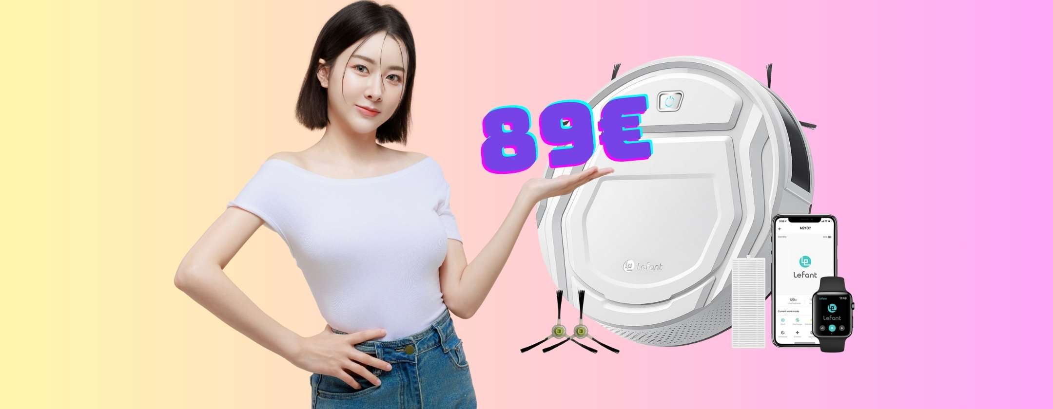 Se le pulizie del pavimento sono una delle cose che più di stressano e ti fanno perdere tempo prezioso risolvi in modo definitivo con una spesa minima. Vai subito su Amazon e puoi mettere nel tuo carrello il robot aspirapolvere LEFANT M210P a soli 89,98 euro, invece che 299,99 euro.