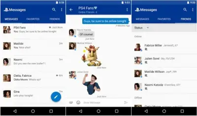 Così come nella console, gli utenti PS potranno chattare individualmente o anche in gruppo. È inoltre possibile inviare emoticon e adesivi e visualizzare se i propri amici sono online e da quale dispositivo sono collegati. L'applicazione per iOS è scaricabile gratuitamente dall'App Store, mentre gli utenti Android potranno scaricarla, sempre gratuitamente, dal Play Store.