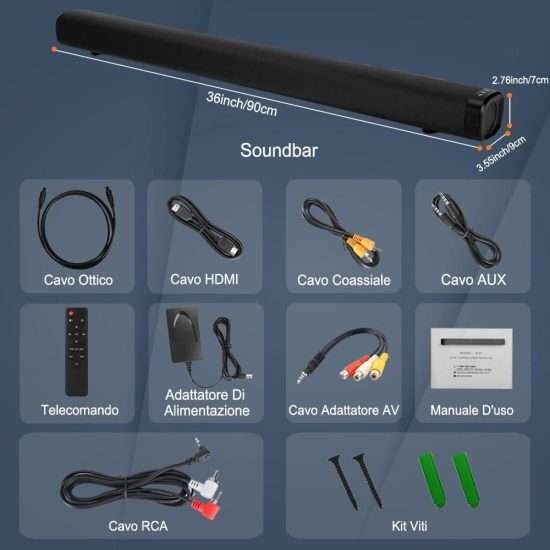 Questa ottima soluzione audio ti offre una potenza impressionante di 120W, che riempirà la tua stanza con un suono ricco e coinvolgente. Il subwoofer integrato enfatizza i bassi profondi e potenti, mentre il suono surround 3D ti avvolge completamente, creando un’atmosfera cinematografica direttamente nel tuo salotto. Goditi ogni dettaglio sonoro dei tuoi film, programmi TV e brani musicali preferiti come mai prima d’ora.