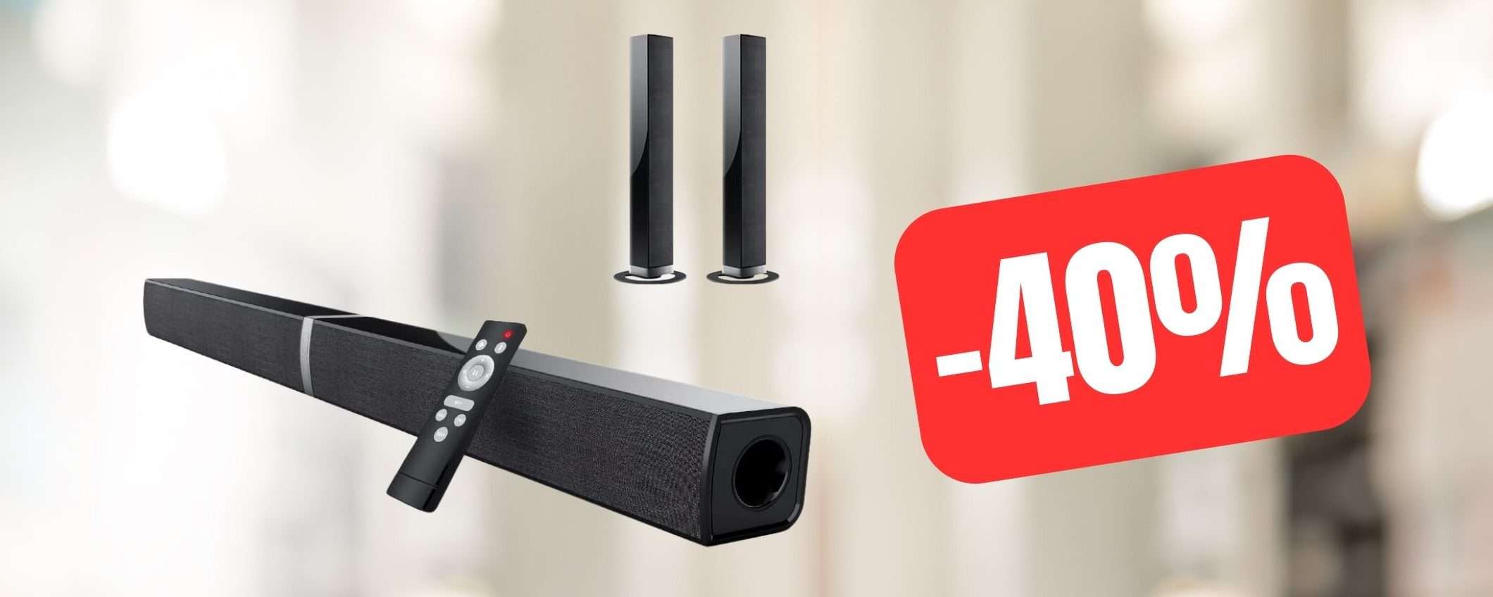 Con questa soundbar 2-in-1 in offerta hai la possibilità di trasformare letteralmente il tuo salotto senza spendere troppo: approfittane ora e pagala soltanto 59,99 euro.