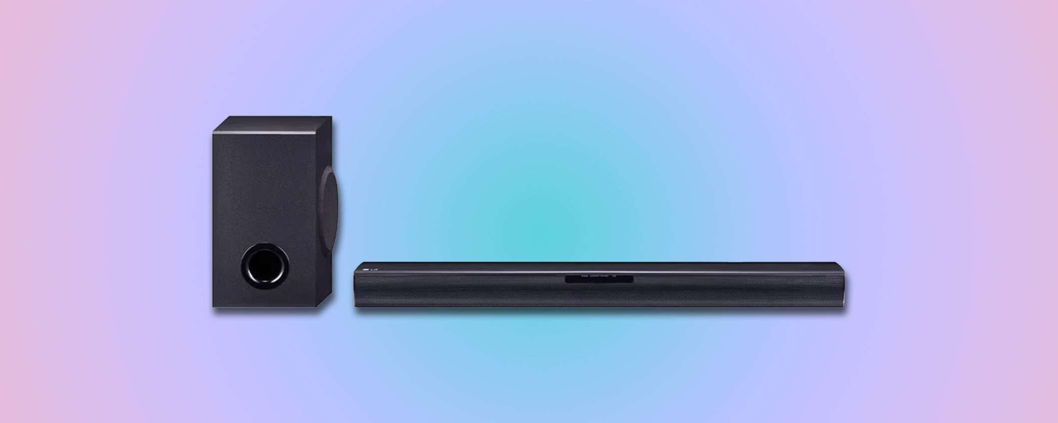 Con la soundbar LG SQC1 migliori subito l’esperienza televisiva grazie a 160W di potenza, configurazione 2.1 canali e subwoofer wireless. Ideale per TV da 32 pollici in su, oggi puoi acquistarla al prezzo eccezionale di 108 euro, con spedizione gratuita e possibilità di pagamento a rate senza interessi con Klarna.