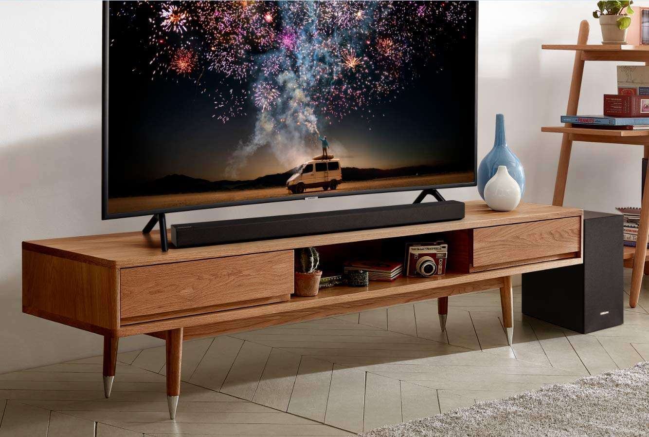 La soundbar Samsung oggi in sconto è un dispositivo molto potente, con 2.1 canali, quindi dotata di subwoofer da 130 W. La potenza totale della soundbar è di 200 W, e riesce a garantire un audio pulito e abbastanza corposo. Ottima la connettività Bluetooth e WiFi presente in questa soundbar, molto comoda e che permette di non ingombrare la stanza con cavi.