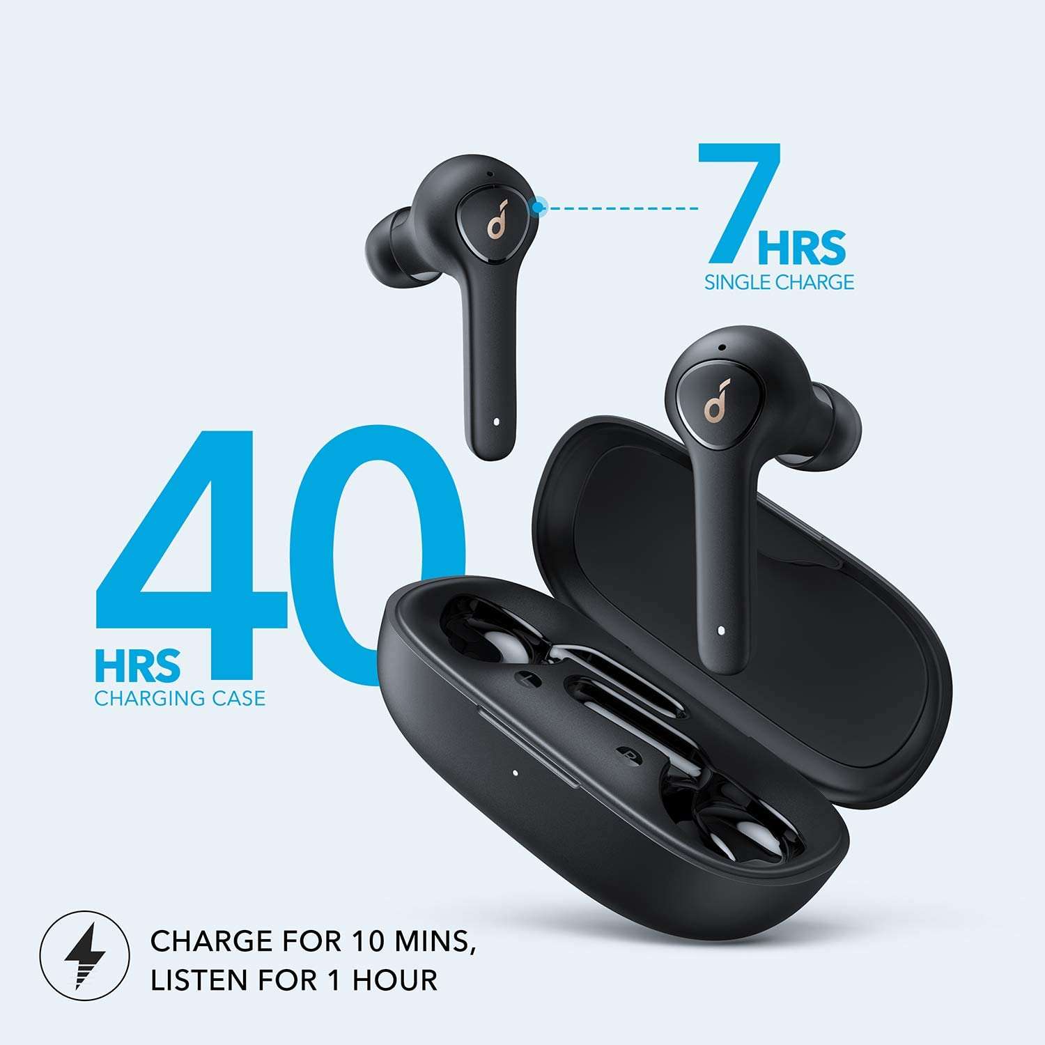 Si tratta del sottobrand di Anker, che produce dispositivi audio di vario genere e dall’ottimo rapporto qualità/prezzo. Il design allungato degli auricolari li rende comodi e ben saldi all’orecchio e la batteria integrata garantisce fino a 7 ore di autonomia con una sola carica e ben 40 ore complessive con la custodia al 100%. Grazie alla certificazione IPX7 le cuffie resistono all’acqua e possono essere utilizzare senza alcun problema durante sessioni di allenamento all’aperto.