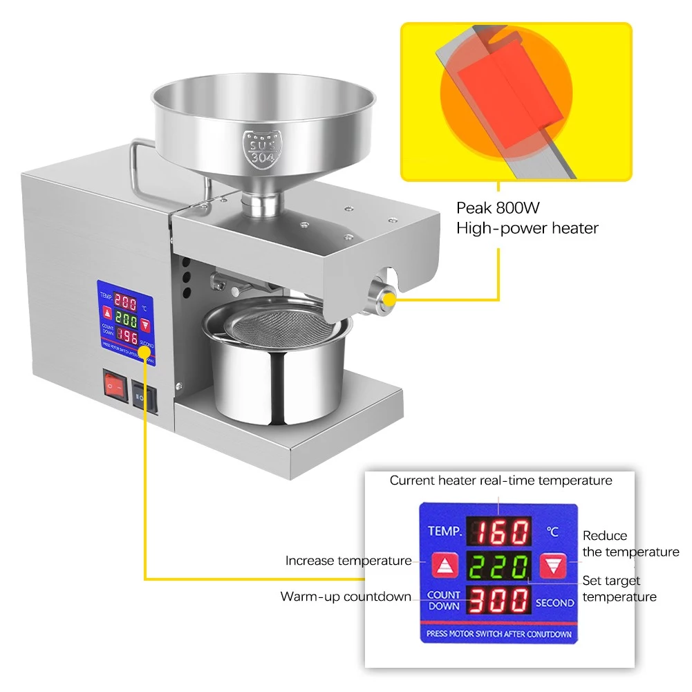La resa dell’olio come sappiamo varia in base alla materia prima e, di conseguenza, in base al livello di pressatura. Con questo macchinario risolverete ogni problema perché anche questo parametro sarà completamente regolabile a vostro piacimento. I due metodi di spremitura a caldo ed a freddo sono in grado di estrarre efficacemente oli organici, rimuovere i gusci duri mantenendo i nutrienti nel cibo.