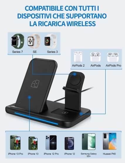 Non farti scappare questa occasionee acquista su Amazon questa Stazione di ricarica Wireless 4in1 a soli solo 21,99€.