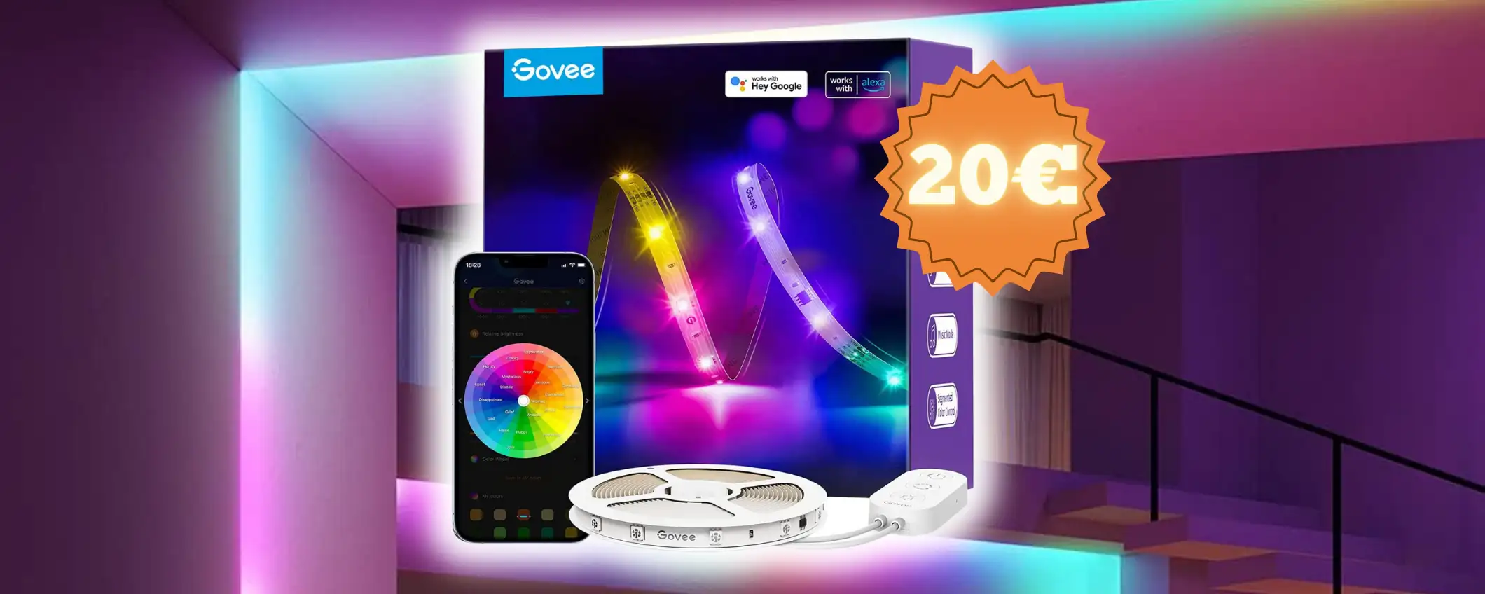 Non perdere altro tempo e acquista la tua nuova striscia LED Govee su Amazon.La trovi in offerta a soli 20,24 euro dopo aver spuntato la casella relativa al coupon speciale che ti garantisce uno sconto del 25% sul prezzo originale.