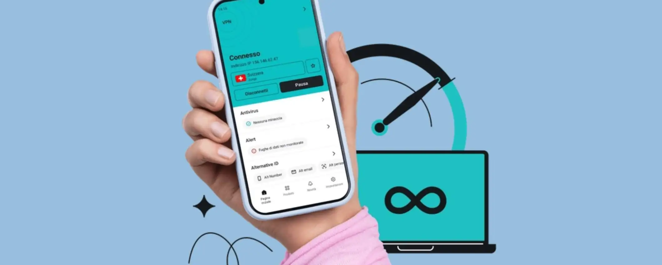 Uno degli aspetti più interessanti di Surfshark One è l’attenzione alla tutela dell’identità digitale. Con Alternative ID, ad esempio, è possibile creare una nuova identità online e un indirizzo email proxy da utilizzare durante registrazioni, iscrizioni o acquisti sul web. In questo modo si riduce l’esposizione dei propri dati reali e si limita il rischio di ricevere spam o di finire coinvolti in fughe di dati. A questo si aggiunge Alert, lo strumento che monitora eventuali violazioni e avvisa l’utente nel caso in cui email, documenti, carte di credito o altri dati personali risultino esposti online. Una funzione particolarmente utile in un’epoca in cui i data breach sono sempre più frequenti.