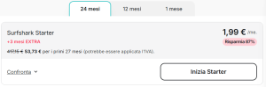 Con la VPN di Surfshark hai un traffico internet crittografato e, soprattutto, la possibilità di accedere a qualsiasi tipologia di contenuto preferito senza le barriere virtuali legati al cambio del paese. E poi, come se questo non bastasse, Surfshark costa davvero pochissimo: appena 1,99€ al mese per ben 15 mesi, di cui 3 sono in regalo. Scopri come funziona.