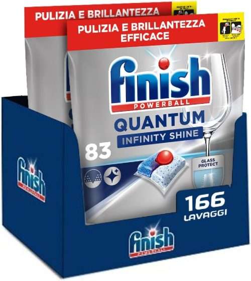 Finish Quantum Infinity Shine per lavastoviglie, 166 unità a 24,99€.