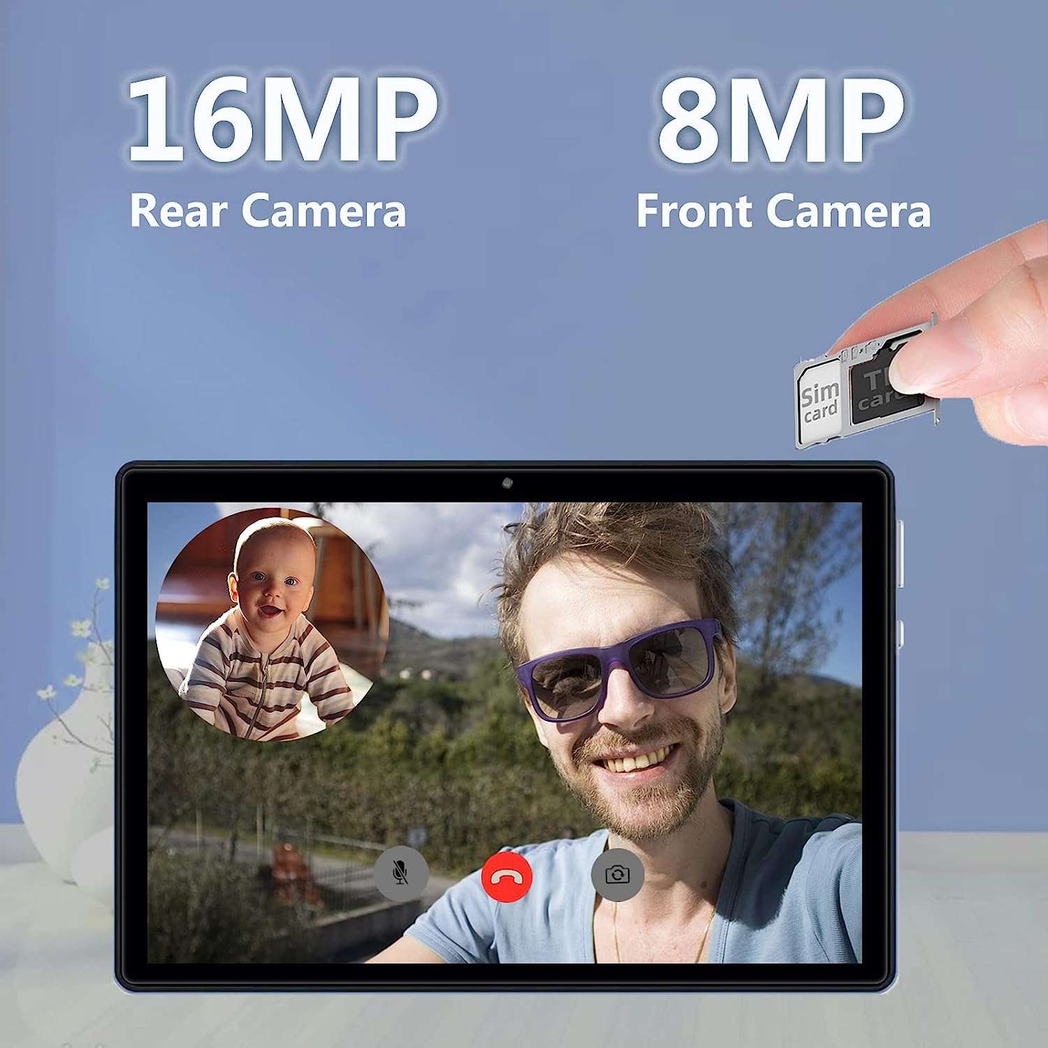 Può inserire fino a due Sim e quindi usarlo come se fosse un cellulare, con la possibilità di chiamare e navigare su Internet con tecnologia 4G LTE. Possiede una fotocamera posteriore da 16 MP e una anteriore da 8 MP. Ha una super batteria da 6900 mAh che dura per molte ore e ha installato il sistema operativo Android 10.
