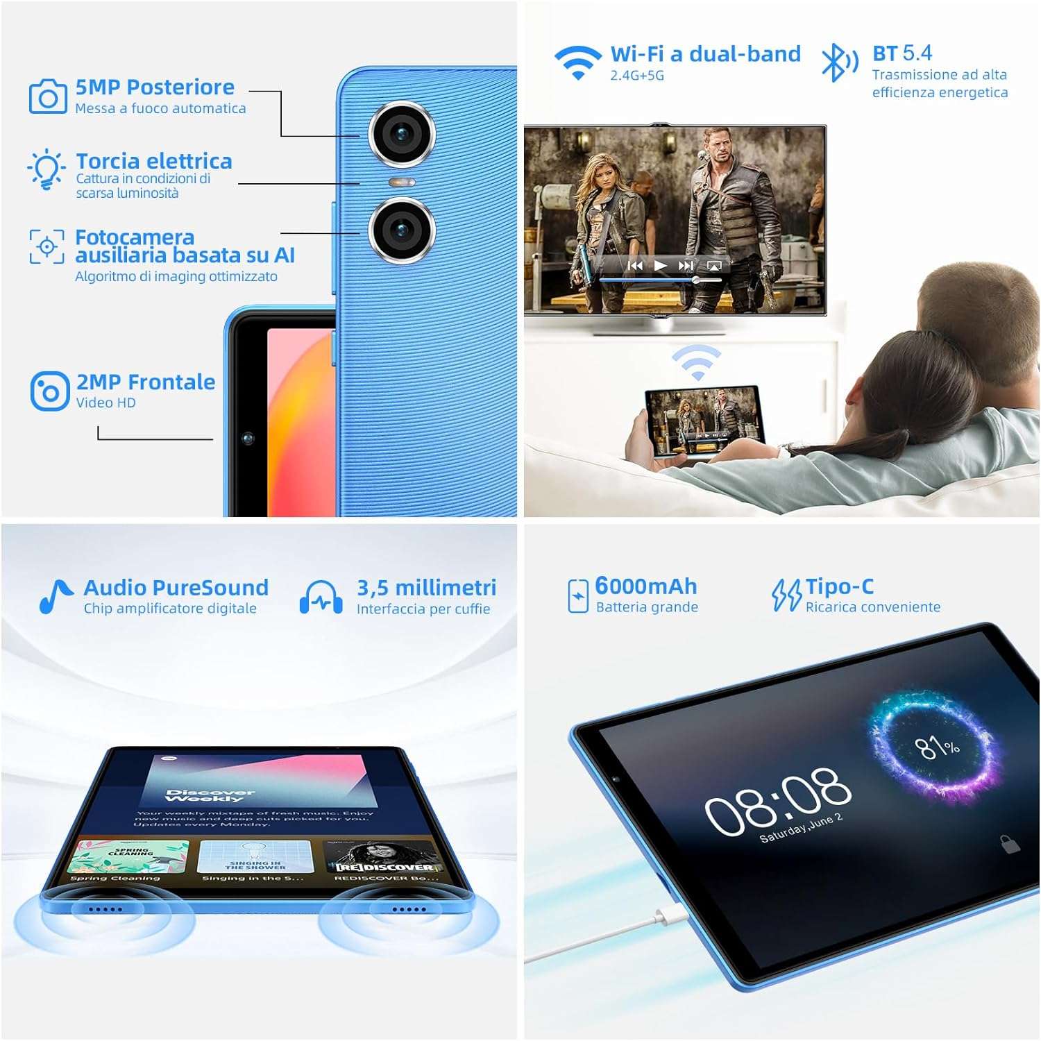 - Performance: monta un processore Octa-core con frequenza massima a 1,8 GHz, 8 GB di RAM che spingono sull’acceleratore e il sistema operativo Android 13, fluido e intuitivo.