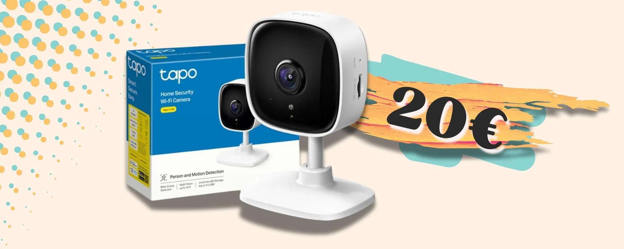 Approfitta ora della promozione prima che termini. Puoi acquistare questa Telecamera WiFi da interno di TP-Link direttamente su Amazon a soli 19,90€ con sconto del 31%.