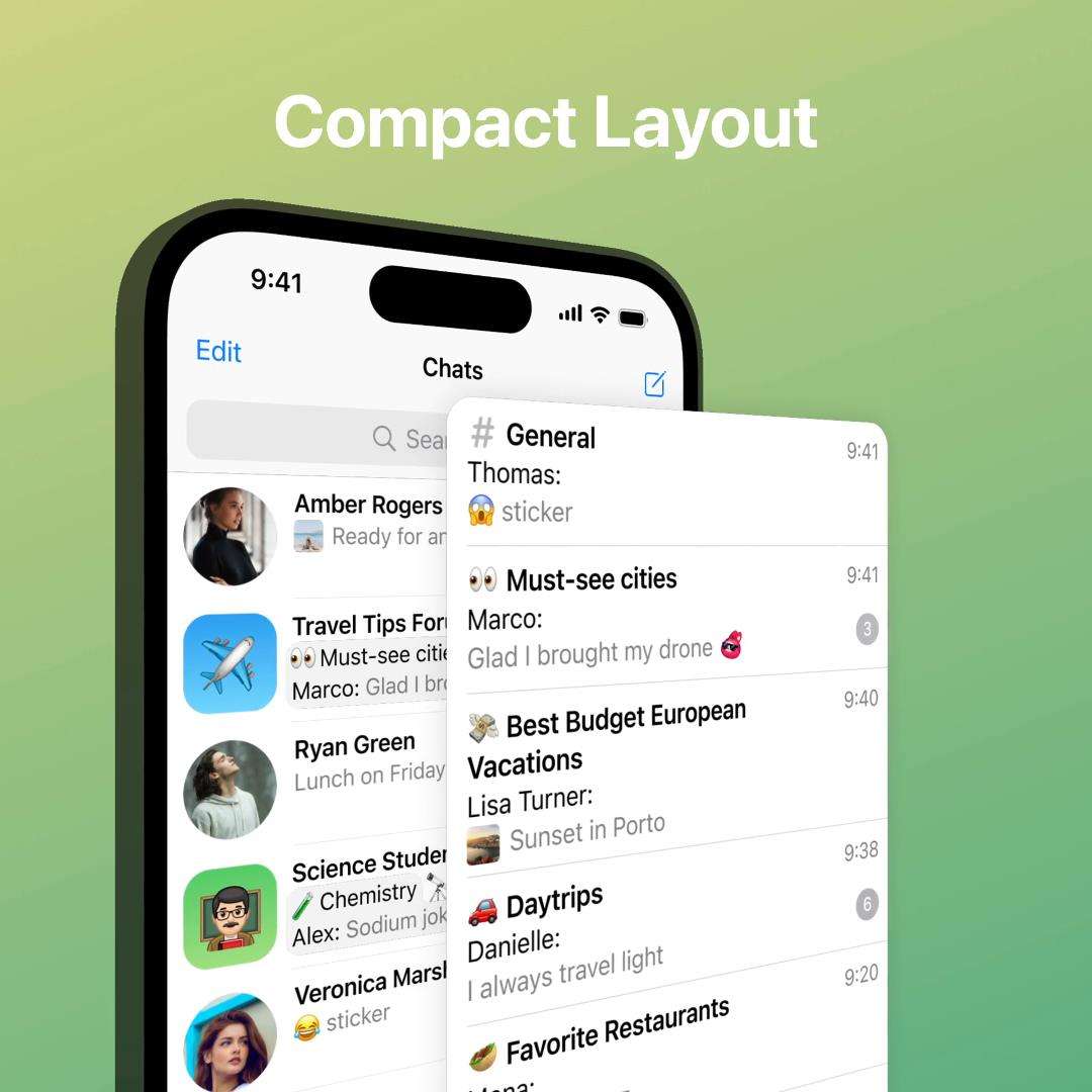 I topic sono ora disponibili anche per i gruppi con almeno 100 membri. I gruppi con i topic vengono adesso mostrati con una modalità a due colonne, in modo da poter accedere alle altre chat con la stessa rapidità di prima. Per passare all’ultimo topic direttamente dalla lista chat, basta toccare il nuovo pulsante nell’anteprima.