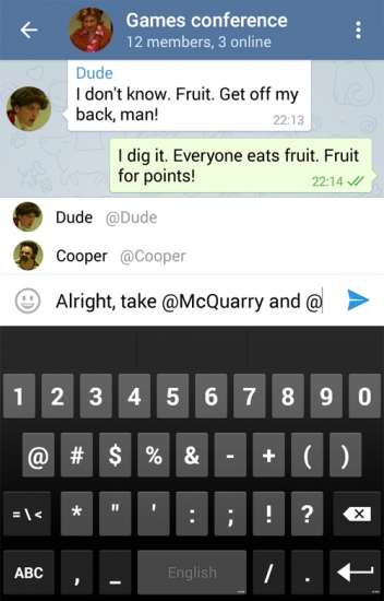 Qualora si decidesse di coinvolgere solo alcune persone appartenenti ad un gruppo, si può fare ricorso alle menzioni. Proprio come già avviene sui social network, è possibile citare alcune persone semplicemente aggiungendo il simbolo “@“ seguito dal nome utente del contatto (è necessario che il contatto abbia un nome utente impostato). Come per le “risposte”, anche in questo caso i soggetti coinvolti riceveranno una notifica.